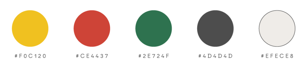 Paletu boje čine pastelne žuta, crvena i zelena – prirodni tonovi koji upućuju na toplinu, poverenje, radost, u tamnijim nijansama kao zrelost, iskustvo i kvalitet.